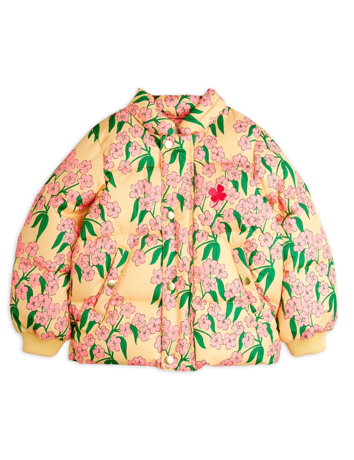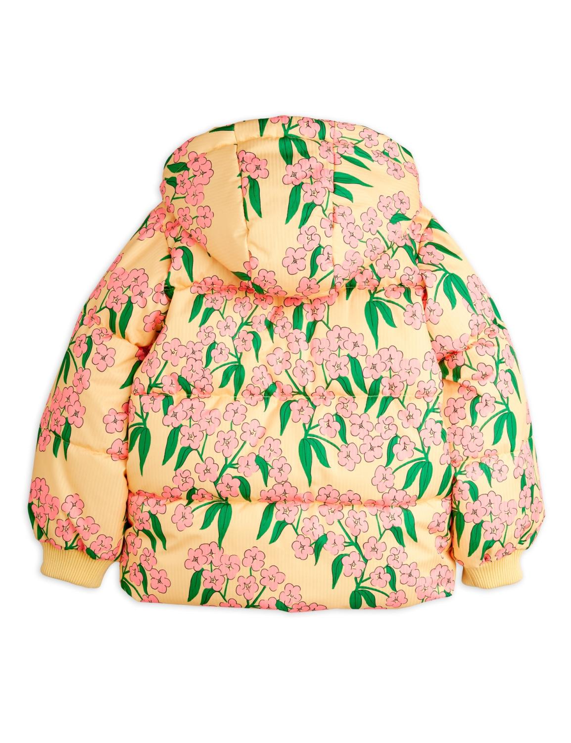 Vattenavvisande och vindtät puffjacka med alpina blommortryck, gjord av 100 % återvunnen polyester. Jackan är designad med två fickor, en avtagbar huva och elastiska muddar.