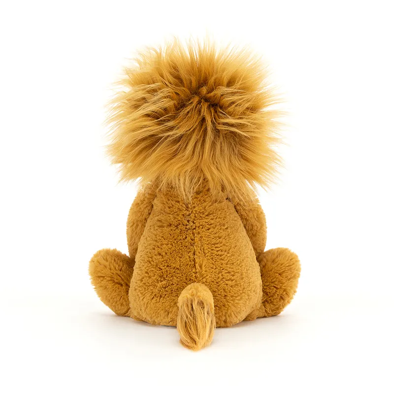 Ett mjukt, gosigt och häftigt lejon med en lite spretig man och vit fläck runt den svarta nosen. Med sin mjuka och lena päls blir detta charmiga lejon en gosig kompis att mysa med eller söka tröst och stöd hos. Ett gosedjur att älska. Tillverkad i 84% polyester, 16% akryl och handtvättas vid behov.