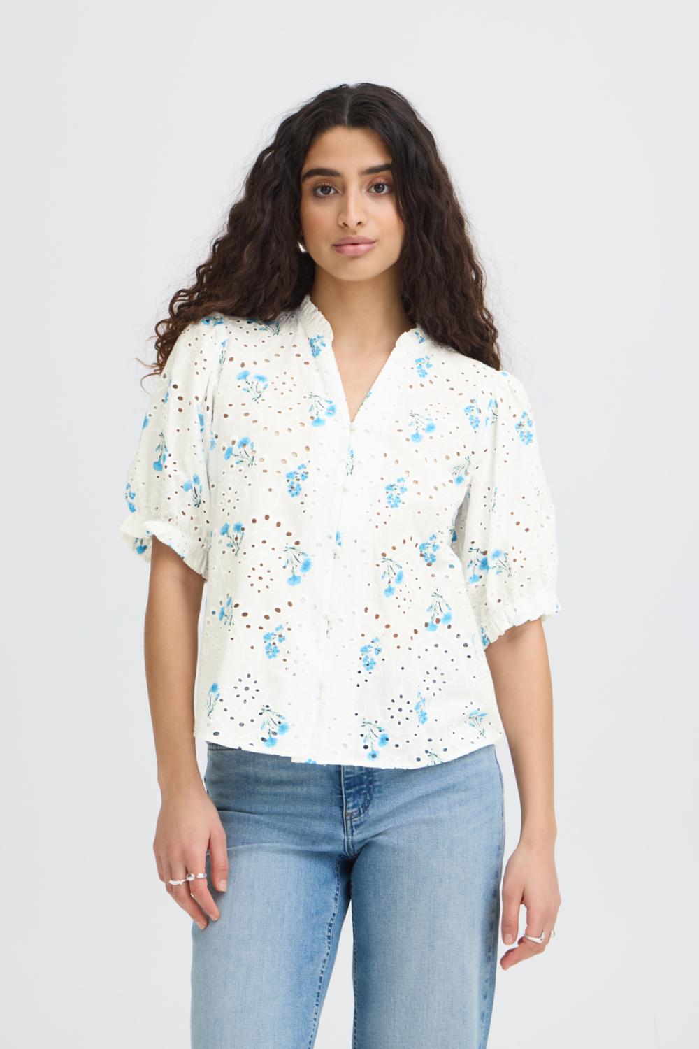 Damkläder Blus IHJudite - ICHI ICHI Lägg till en bevakning så meddelar vi dig så snart varan är i lager igen. Produkten är nu bevakad Vi meddelar dig så snart varan är i lager igen. E-postadress Lägg till bevakning Dina personuppgifter behandlas i enlighet med vår integritetspolicy. Blus IHJudite - ICHI ICHI - Normal i storleken - Korta puffärmar - V-ringning med liten ståkrage med volanger - Bomullskvalitet med broderi anglaise 100% bomull
