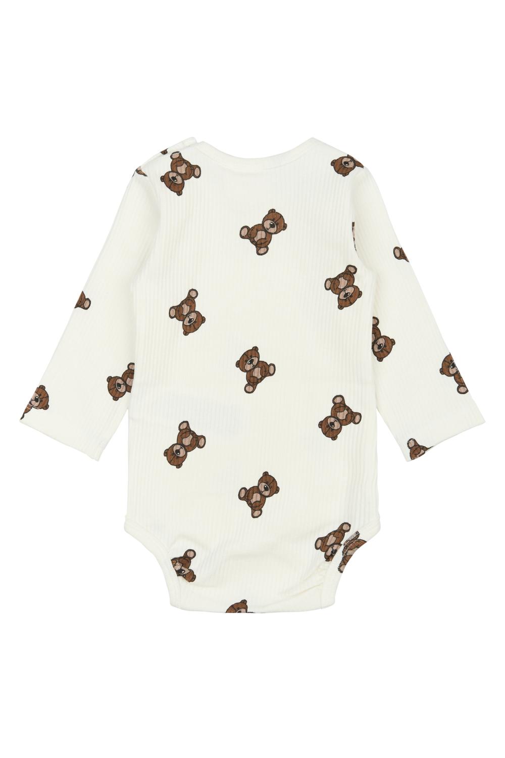Söt body från The New i benvit med en fin ribbad struktur. Bodyn har ett härligt gosedjur över hela tryck och stängs med praktiska tryckknappar över vänster axel och mellan benen.