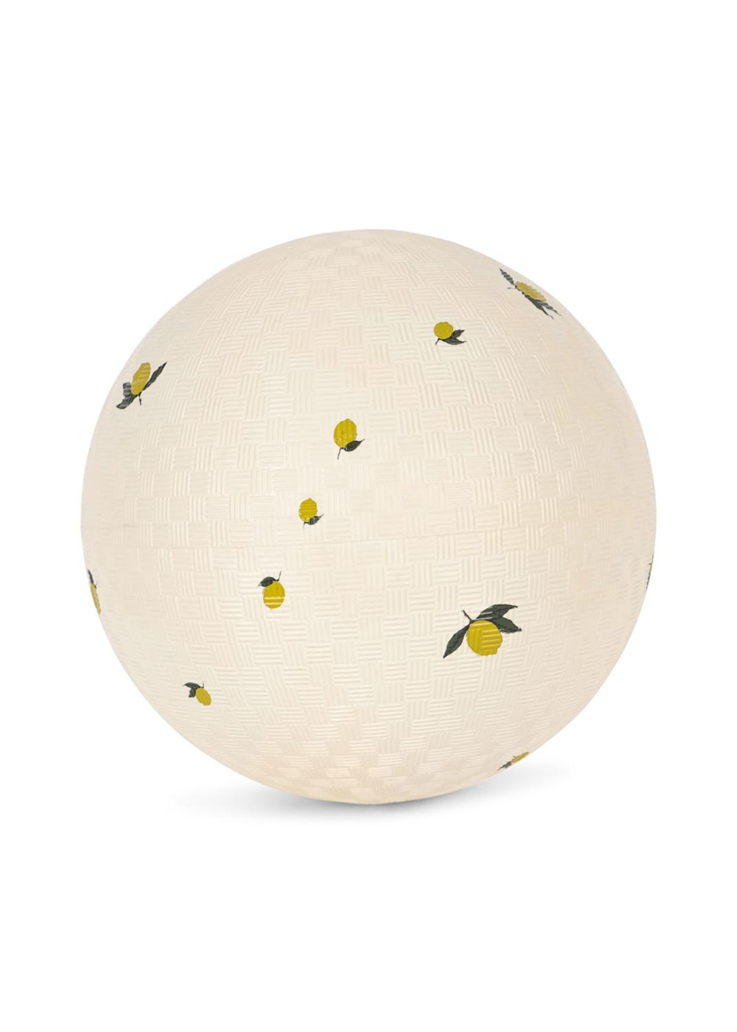 Lyft utomhusleken med denna boll i 100 % naturgummi från Konges Sløjd, skapad för att förena tidlös rörelseglädje med skandinavisk elegans. Den mjukt krämfärgade ytan pryds av varumärkets ikoniska citronmönster, vilket ger ett modernt och stilrent uttryck – perfekt för trädgården, lekparken eller familjens utflykter. Bollen har en texturerad, lättgreppad yta som gör det enkelt för små händer att fånga, sparka och studsa, samtidigt som den känns behaglig att hålla i. Det flexibla och slitstarka naturgummit ger lång hållbarhet även vid intensiv lek och tuffare tag. Den är lätt i handen, enkel att torka av och smidig att ta med – idealisk för trädgårdslekar, sportövningar, gruppaktiviteter och resor. En lekfull och vacker klassiker som uppmuntrar rörelse, koordination och fantasi – i sann Konges Sløjd‑anda.