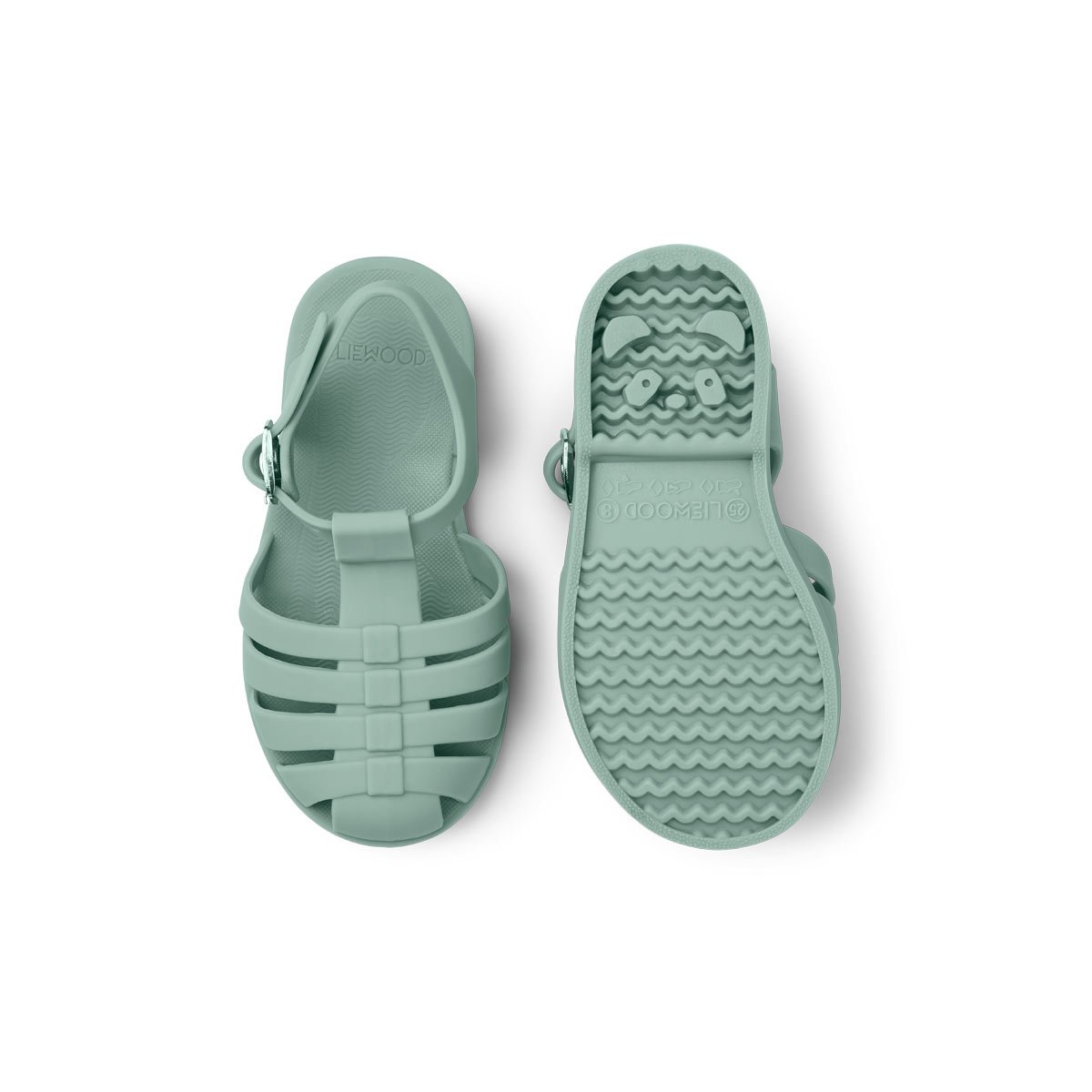 Bre-sandalerna är flexibla barnsandaler utan skadliga kemikalier. Perfekt för stranden eftersom PVC inte absorberar något vatten och din lilla lämnar söta panda-formade fotavtryck på någon mjuk yta.
