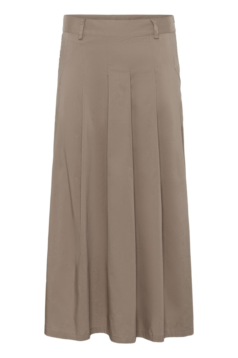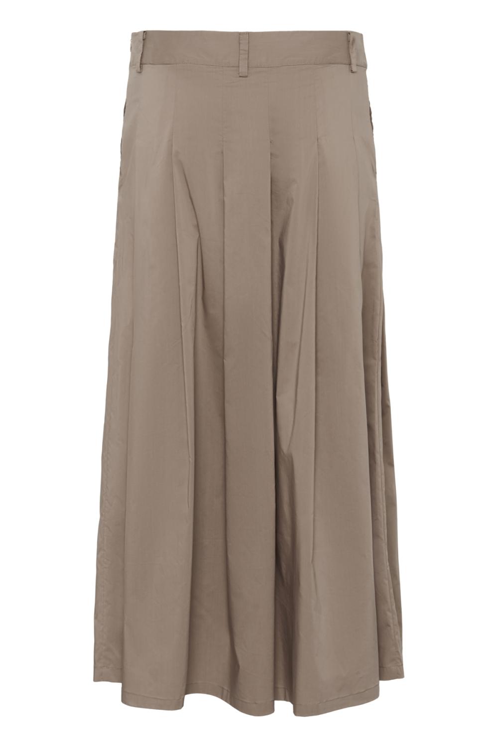 Maxikjol med markerad vidd och tydliga veck. Sitter högt i midjan med bälteshällor, lång och svepande för en stilren look.