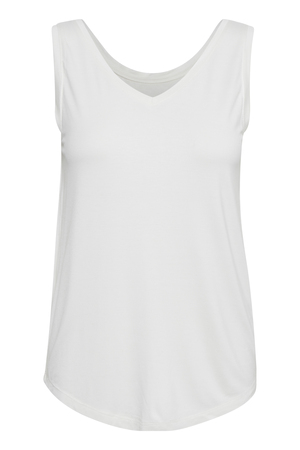 Ärmlös damtopp med V-ringning, normal passform och rundad nederkant. Mjuk och bekväm kvalitet passar både arbete och fritid. Perfekt för flera stilar och lager-på-lager.