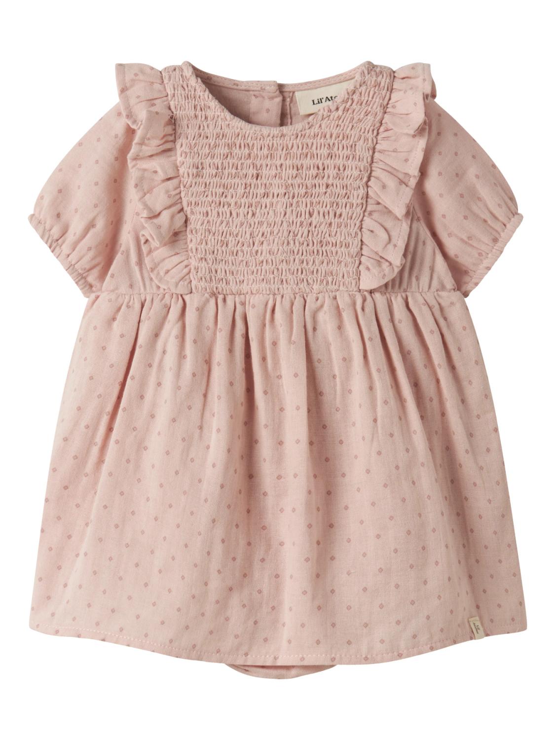 Fräscha upp ditt barns garderob med vackra och coola klänningar, perfekta för alla årstider och tillfällen. Vävt tyg har ett distinkt korslagt mönster och en lätt strukturerad yta för en ren och klassisk look. - Produkttyp: Klänningsbody - Hals: rund hals - Ärm: korta ärmar - Manschetter: elastiska manschetter - Stängning: Knappknäppning, tryckknappsknäppning - Extradetaljer: volanger, smockdetalj - Passform: Lös passform
