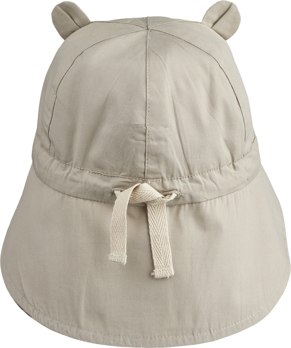 Liewood solhatten har en rund huvudform och ett insytt, justerbart snöre/snörning i nacken, vilket säkerställer en bra passform. Framtill finns en smal skärm, och baktill finns en lång halsskugga, som skuggar de mest utsatta områdena på huvudet och nacken.