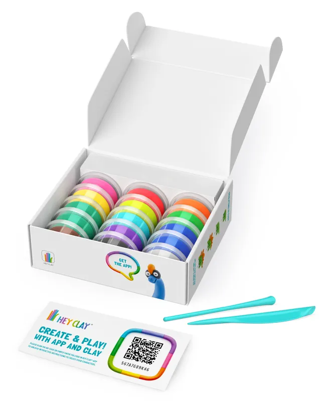 Den tillhörande gratis-appen är barnvänlig och har interaktiva videoguider som ger enkla steg-för-steg instruktioner (med tal på engelska) för hur man skulpterar dessa karaktärer och många fler. För att låsa upp beskrivningarna i appen för setets alla karaktärer använder ni den kod som står på informationsbladet inuti paketet. Instruktionsvideorna visar alla grundläggande tekniker för att skulptera i lera och snart kommer barnen längta efter att skapa sina helt egna figurer och dela bilder av dem med sina vänner. Innehåll: 15 burkar lufttorkande lera (totalt ca 230 g lera i olika färger), 2 skulpteringsverktyg, samt ett informationsblad med bilder på alla figurerna, en länk till där ni kan hämta appen och koden som låser upp appens guider för hur man skapar alla karaktärer i setet.