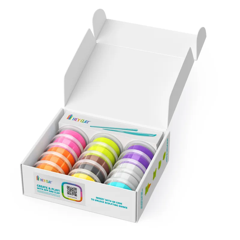 Den tillhörande gratis-appen är barnvänlig och har interaktiva videoguider som ger enkla steg-för-steg instruktioner (med tal på engelska) för hur man skulpterar dessa karaktärer och många fler. För att låsa upp beskrivningarna i appen för setets alla karaktärer använder ni den kod som står på informationsbladet inuti paketet. Instruktionsvideorna visar alla grundläggande tekniker för att skulptera i lera och snart kommer barnen längta efter att skapa sina helt egna figurer och dela bilder av dem med sina vänner. Innehåll: 15 burkar lufttorkande lera (totalt ca 540g lera i olika färger), 2 skulpteringsverktyg, samt ett informationsblad med bilder på alla figurerna, en länk till där ni kan hämta appen och koden som låser upp appens guider för hur man skapar alla karaktärer i setet.