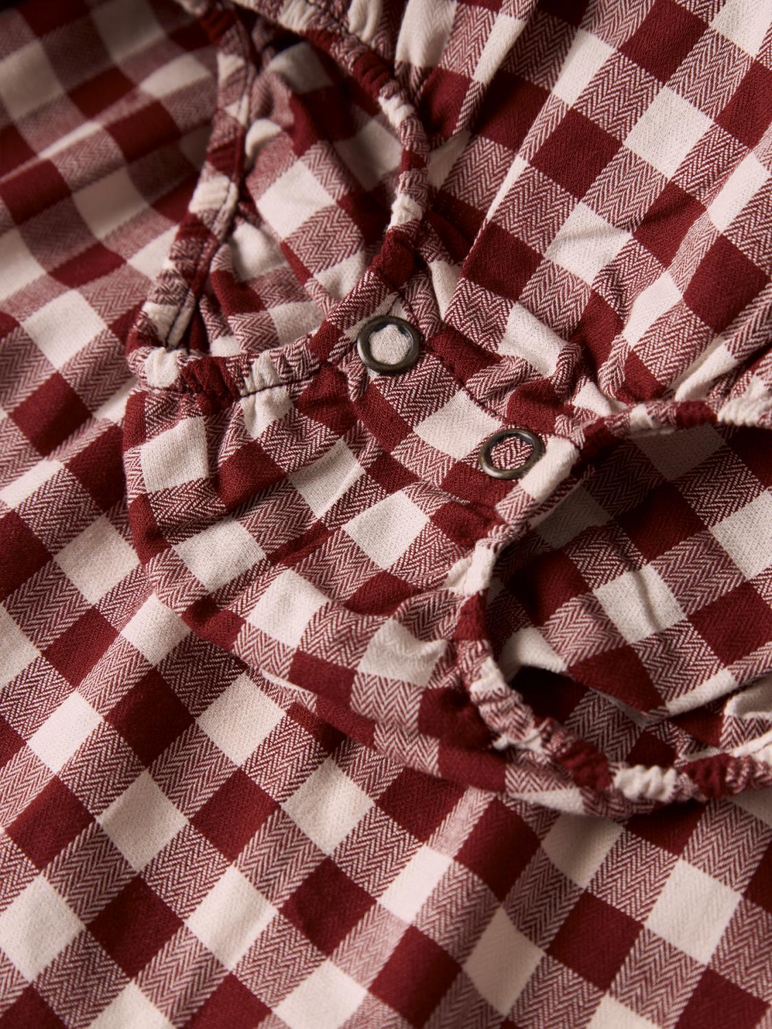 - Produkttyp: Klänningsbody - Stängning: Knappstängning - Stängning: Tryckknappar - Hals: rund hals - Ärm: Långa ärmar - Manschetter: elastiska manschetter - Extradetaljer: Volanger - Extradetalj: Emblem - Tyg: Vävt - Passform: Normal passform