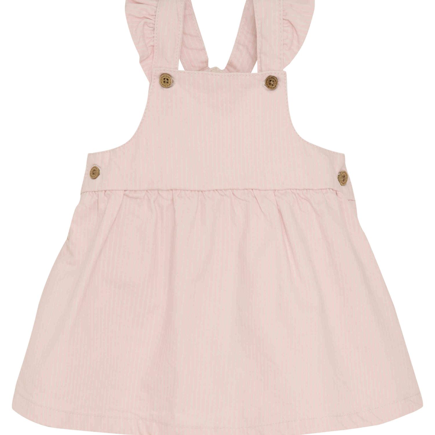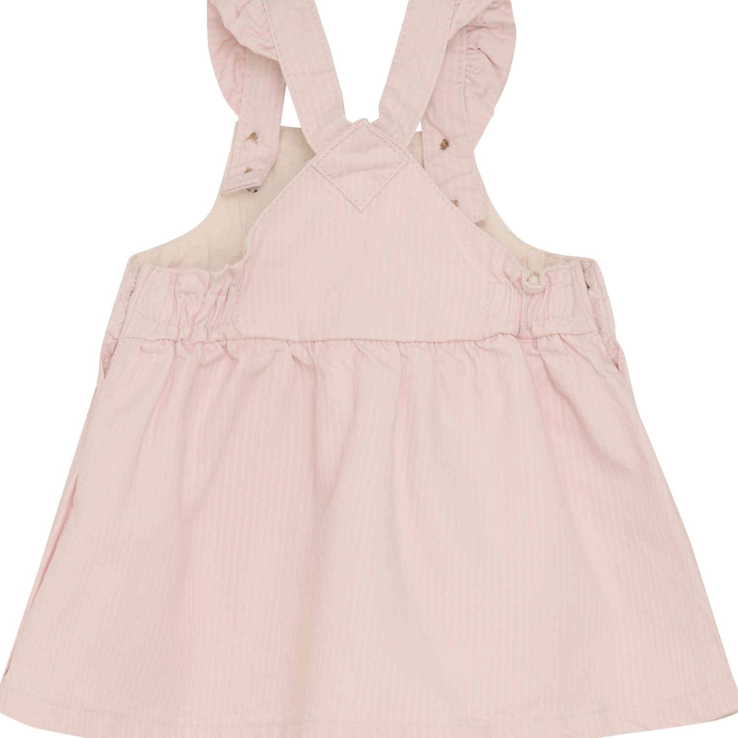 Charmig Minymo klänning i randig rosa nyans med fina volanger på axlarna. Klänningen har en lätt och skön passform som ger god rörelsefrihet för lek och aktiviteter.