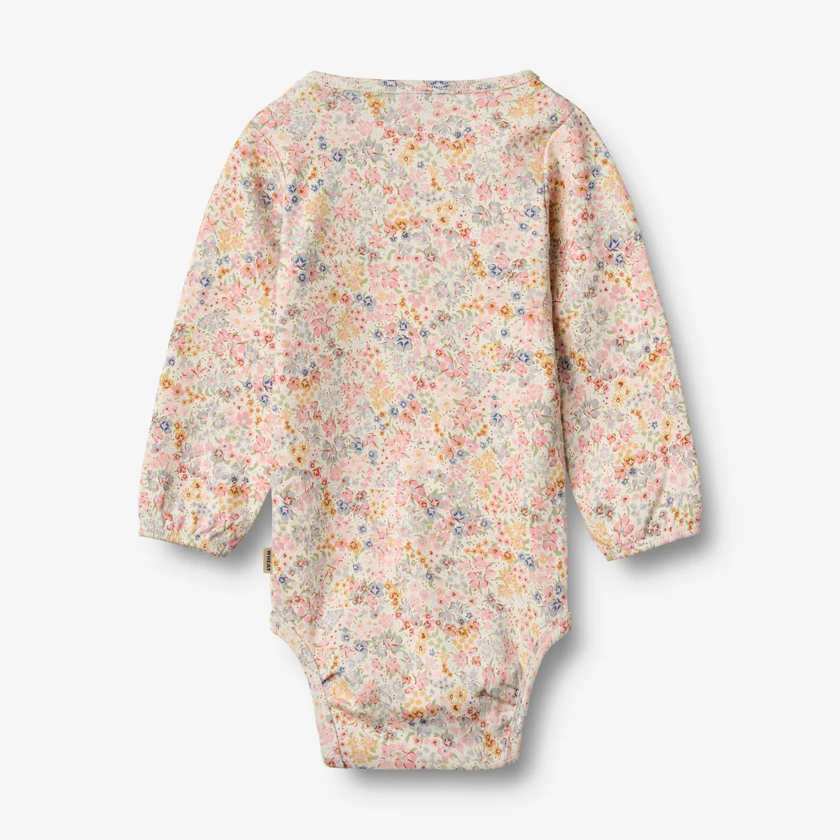 Långärmad body med tryck i mjuk ekologisk bomull för din baby.