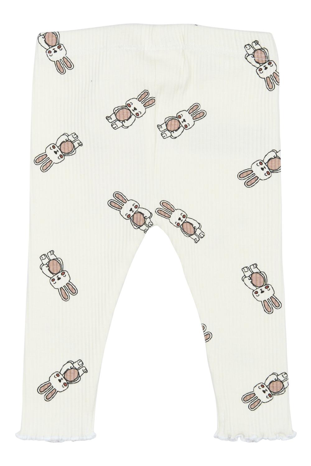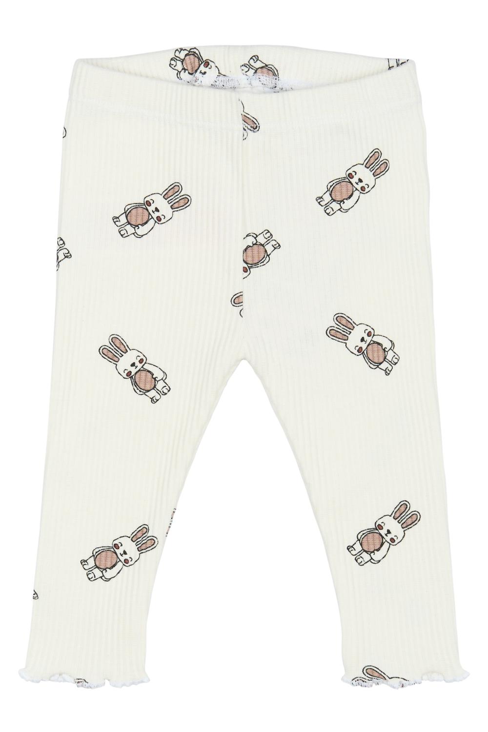 Nice leggings in white with a lovely ribbed structure. The leggings have a fine rabbit print all over and at the waist has a nice elastic edge, which ensures a good and comfortable fit.