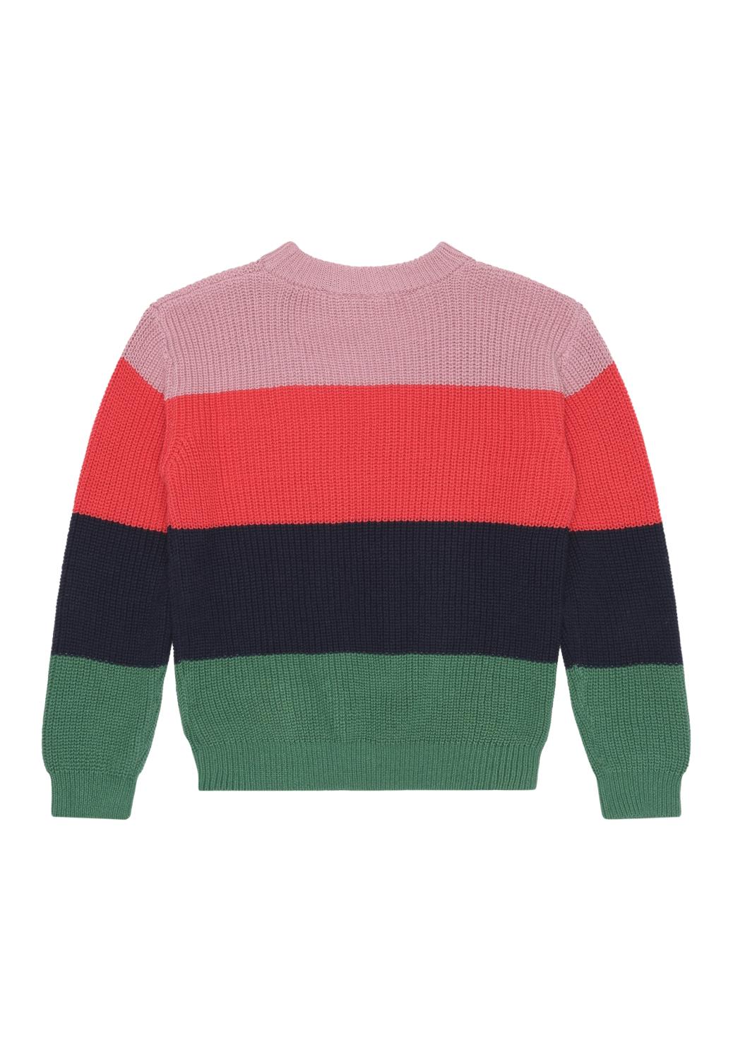 Denna härliga stickade tröja är ett absolut måste i garderoben för den kalla årstiden. Det är en varm tröja med ränder i flera färger, perfekt för vardagsbruk i kyligt väder.