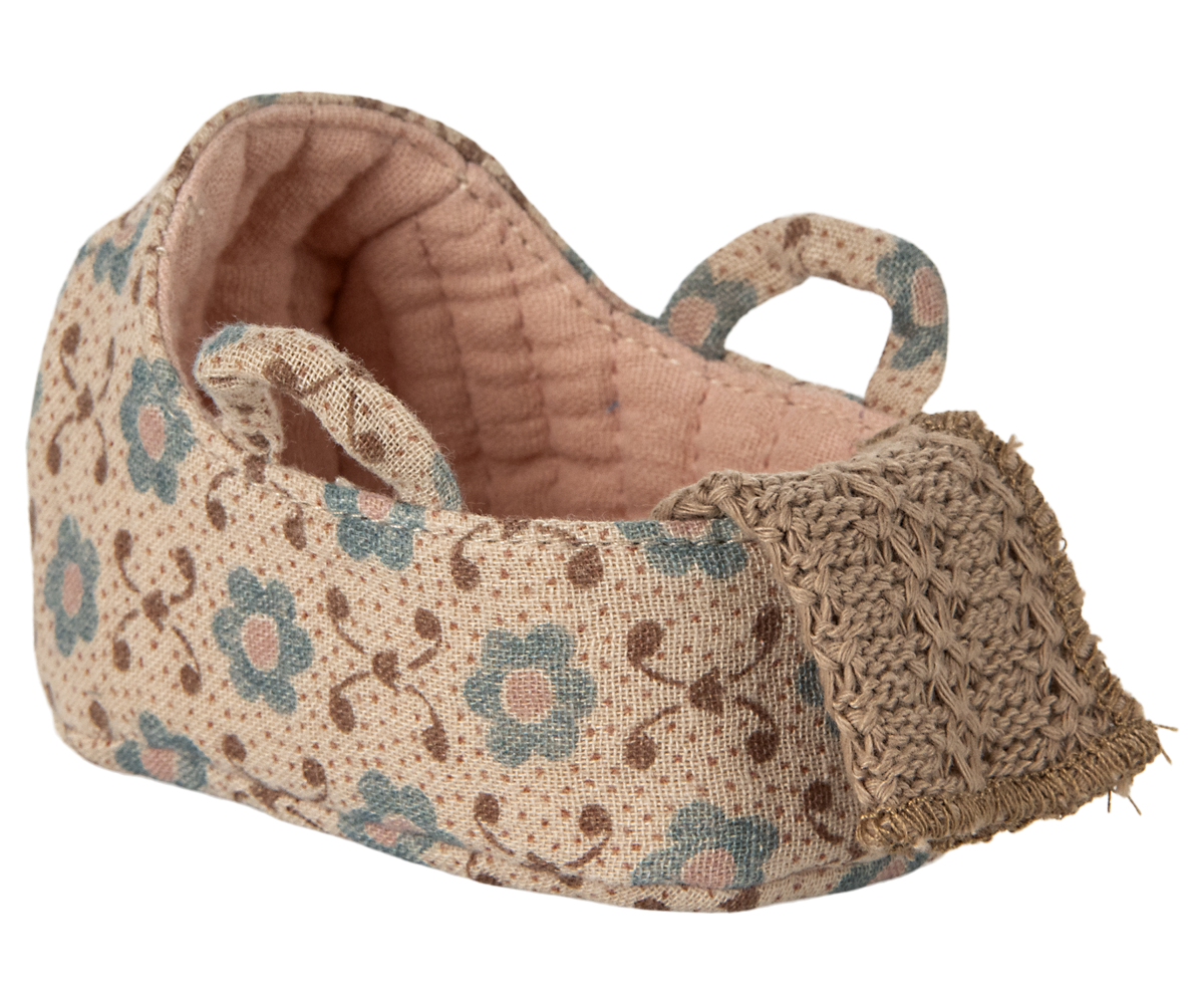 Maileg – Babylift till mus, bärsäng till baby mus i rosa, mjuk vagga med filt