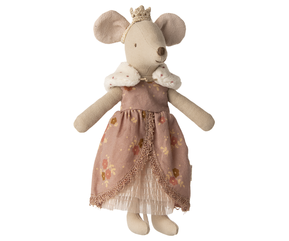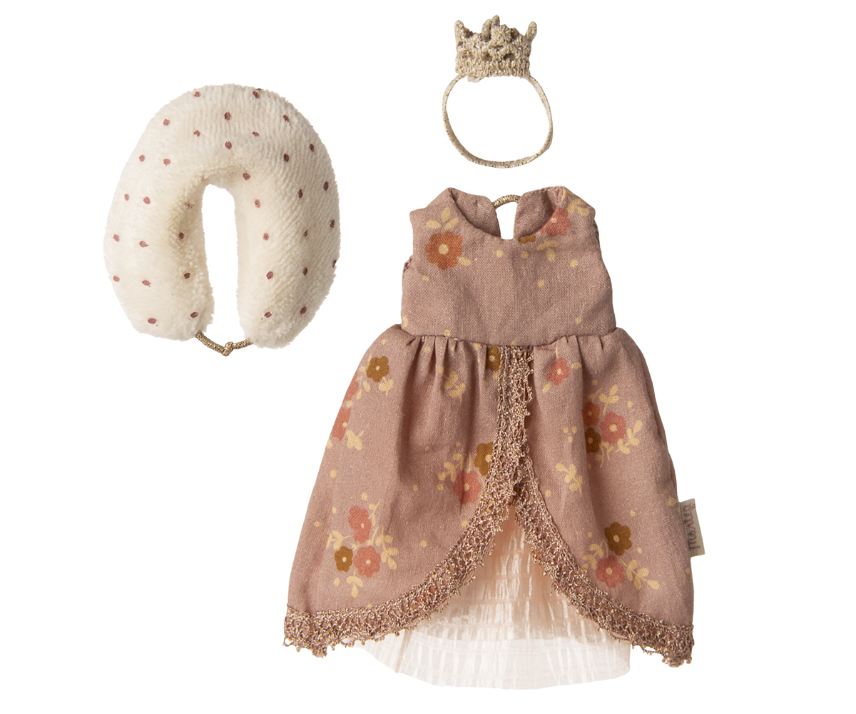 Maileg – Kläder till Drottning mus, klänning med krage till mamma mus och guldig krona