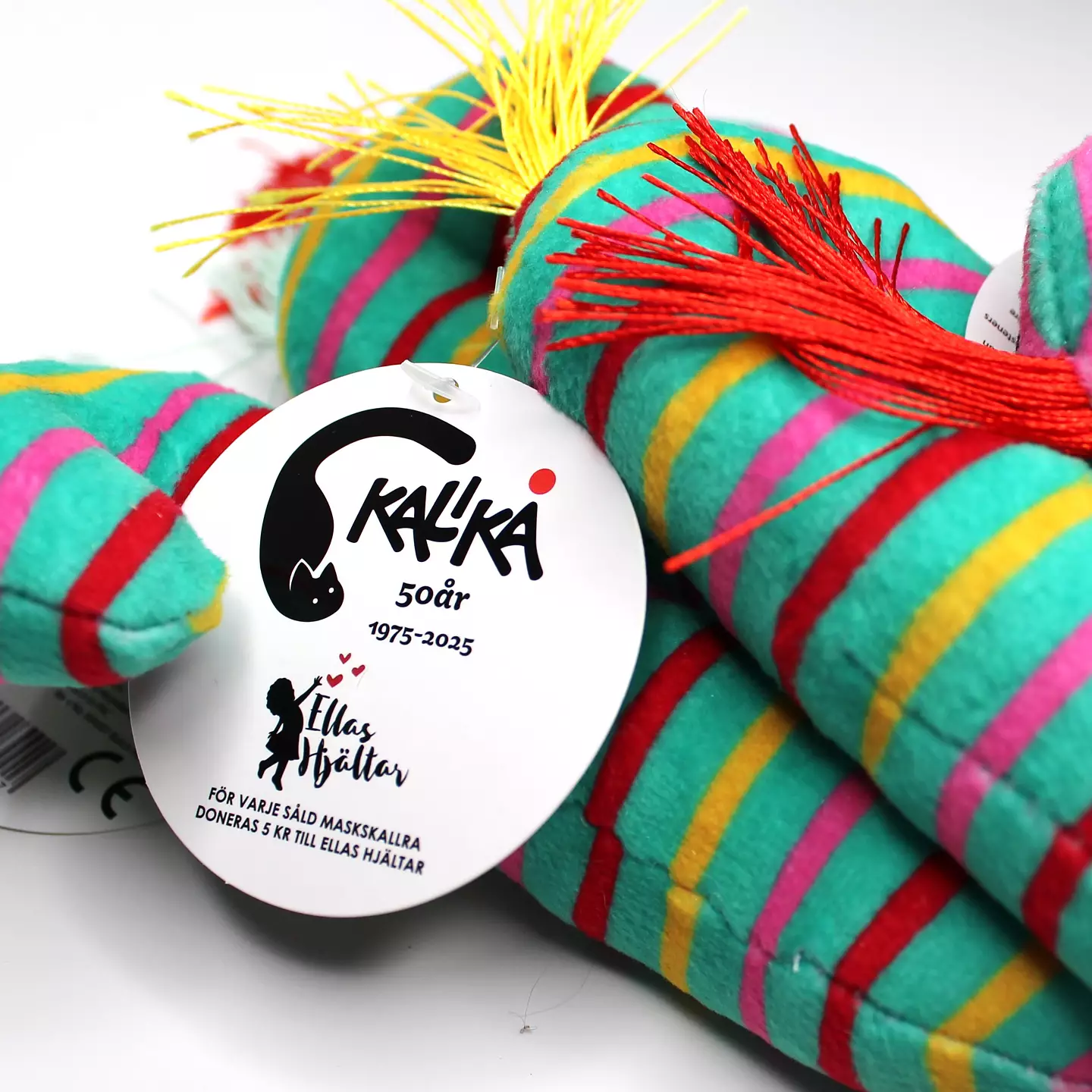 Maskskallran säljs till förmån för ”Ellas Hjältar”. För varje såld skallra doneras 5 kr till Insamlingsstiftelsen Ellas hjältar. Levererar med något varierade hårfärger.