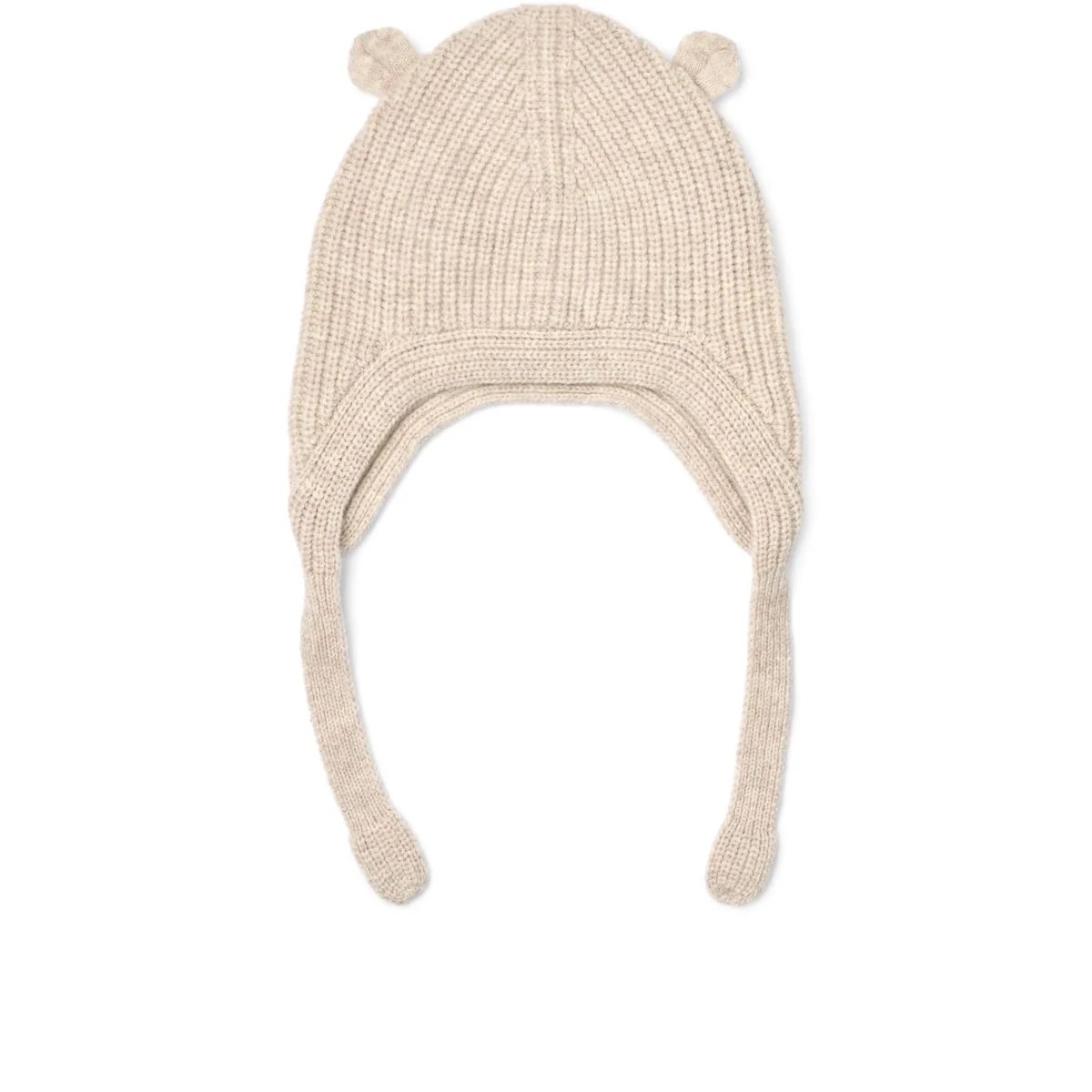 Håll din bebis varm och bekväm med AVIANA-mössan. En klassisk stickad babymössa i ull med lekfulla öron och längre snören, utformad för att täcka öronen för extra värme.