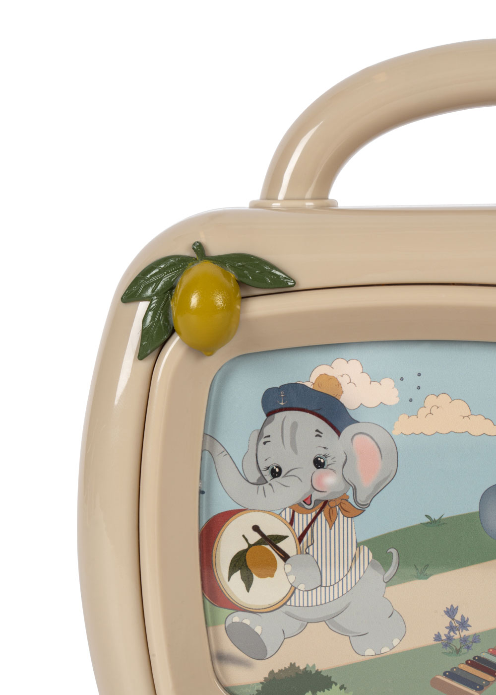 Söt liten musikalisk TV-leksak för de yngsta. Aktivera den rörliga skärmen genom att vrida knappen moturs. Bilderna på skärmen följer de lugnande ljuden.