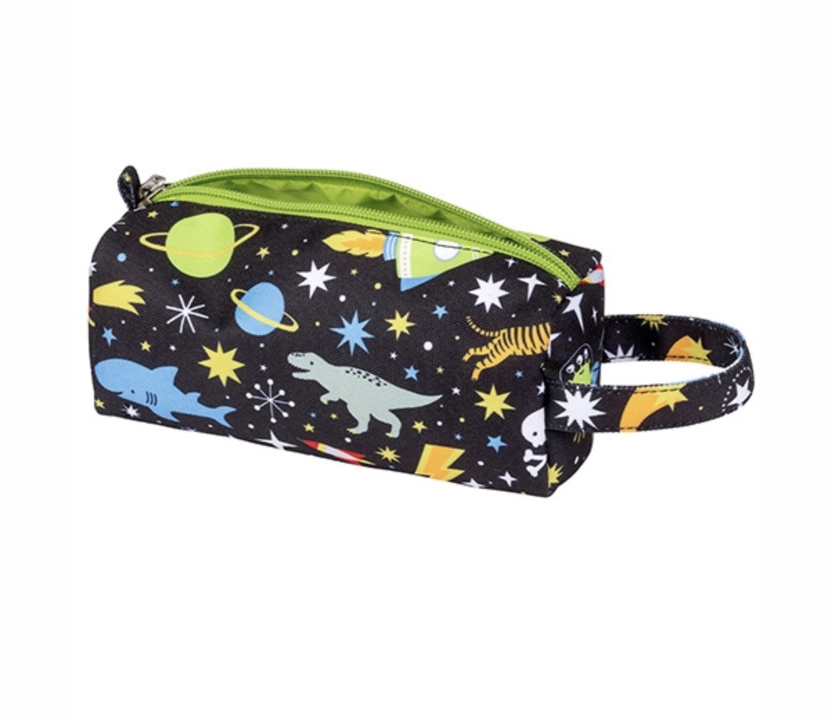 Pennfodralet har plats för markörer, färger, pennor, sax och linjal.