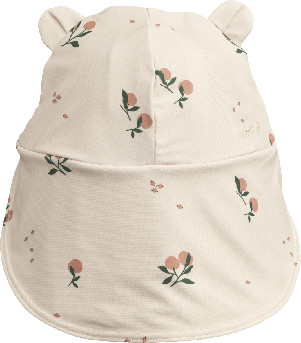 badhatten badmössa har formen av en legionärshatt hatt med rund huvudform. Framtill finns en fast men flexibel skärm, och baktill finns en lång halsskugga, som skuggar de mest utsatta områdena på huvudet och nacken. Längst upp finns två söta öron.