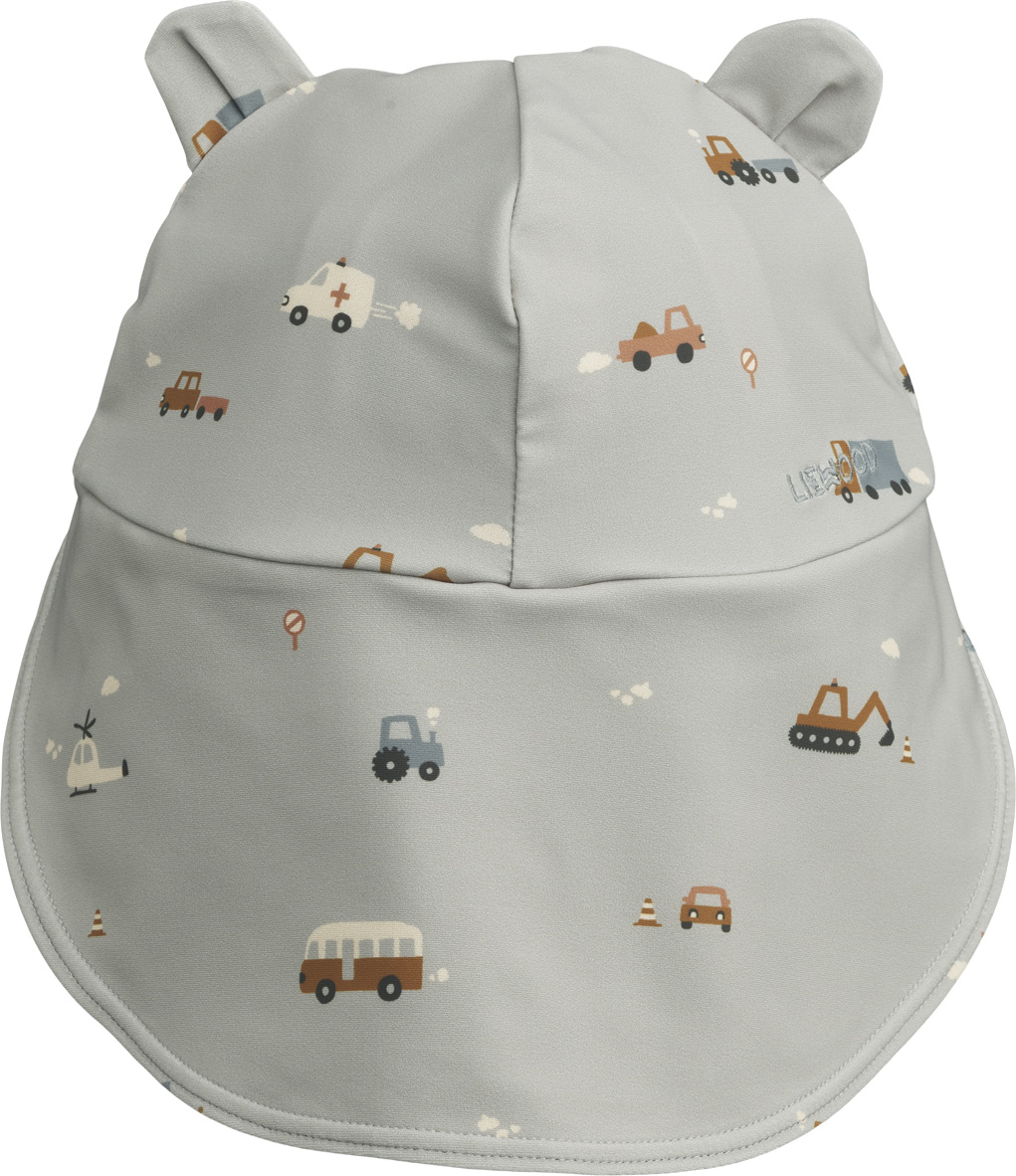 badhatten badmössa har formen av en legionärshatt hatt med rund huvudform. Framtill finns en fast men flexibel skärm, och baktill finns en lång halsskugga, som skuggar de mest utsatta områdena på huvudet och nacken. Längst upp finns två söta öron.