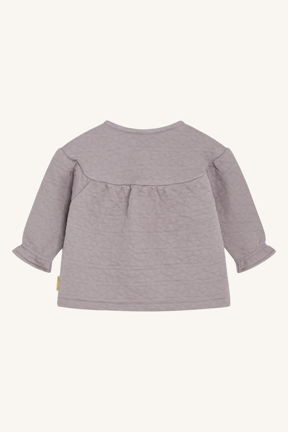 Sweatshirt i dubbeljersey med quiltade blommor. Plagget har en söm vid bröstet, resår i ärmar och knappar fram. Denna produkt är gjord av 70% ekologisk bomull.