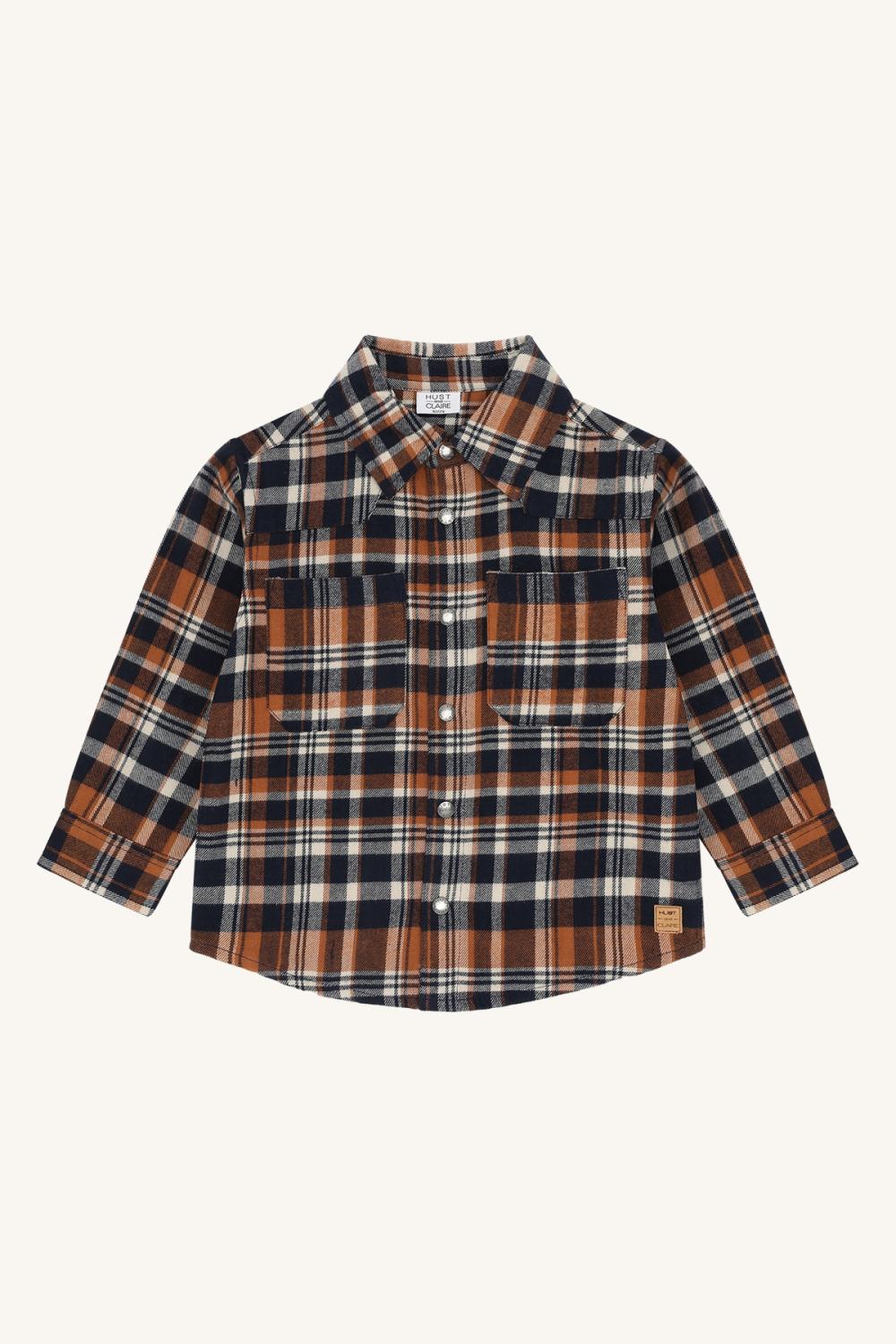 Den klassiska rutiga skjortan har en urban och mångsidig look med djupblå, svarta och sandfärgade nyanser. Den är lätt, mjuk och perfekt att bära i lager på lager, oavsett om den bärs öppen över en T-shirt eller stängd för en mer formell look. Bröstfickan kompletterar designen med en funktionell och tidlös touch.