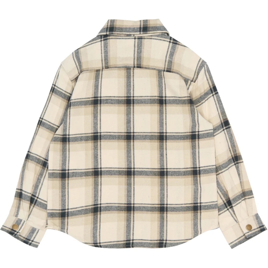 Denna rutiga flanellskjorta för pojkar kombinerar komfort med en tidlös look. Den är tillverkad av 100 % bomull, som känns mjuk och bekväm mot huden, och den något rymliga passformen ger god rörelsefrihet i vardagen. Skjortan stängs framtill med knappar och har en praktisk bröstficka, vilket ger en cool, grafisk twist med diagonala rutmönster. Den rundade fållen och de långa ärmarna gör den enkel att styla både öppen över en T-shirt och stängd för en snyggare look. Ett mångsidigt val som fungerar för skolan, fritiden och lite mer sofistikerade tillfällen.