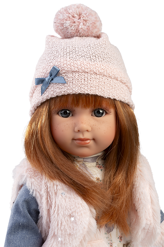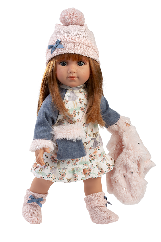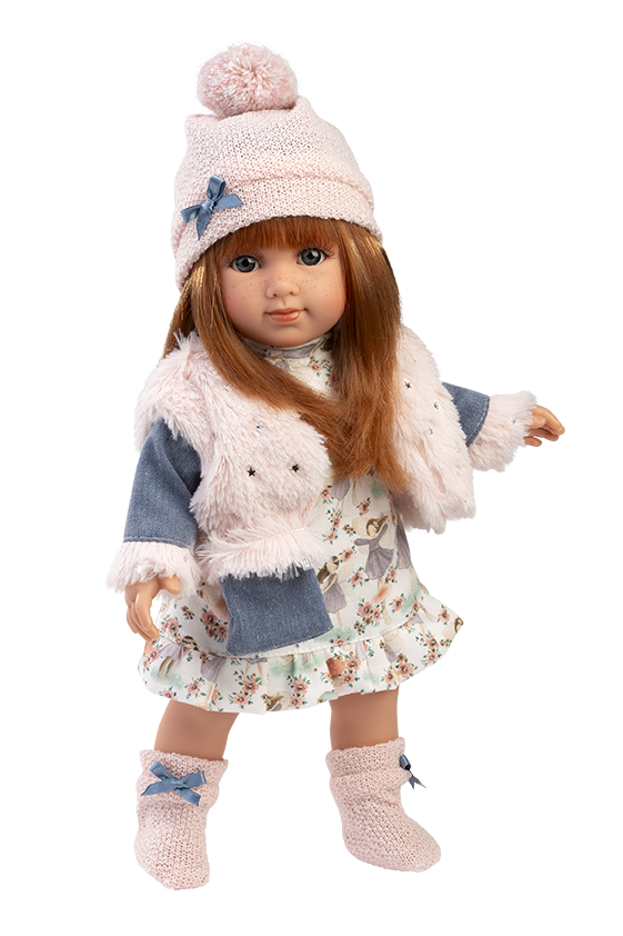 Färg: Ljus hy, rött hår, fräknar, fin klänning med väst, mössa samt strumpor