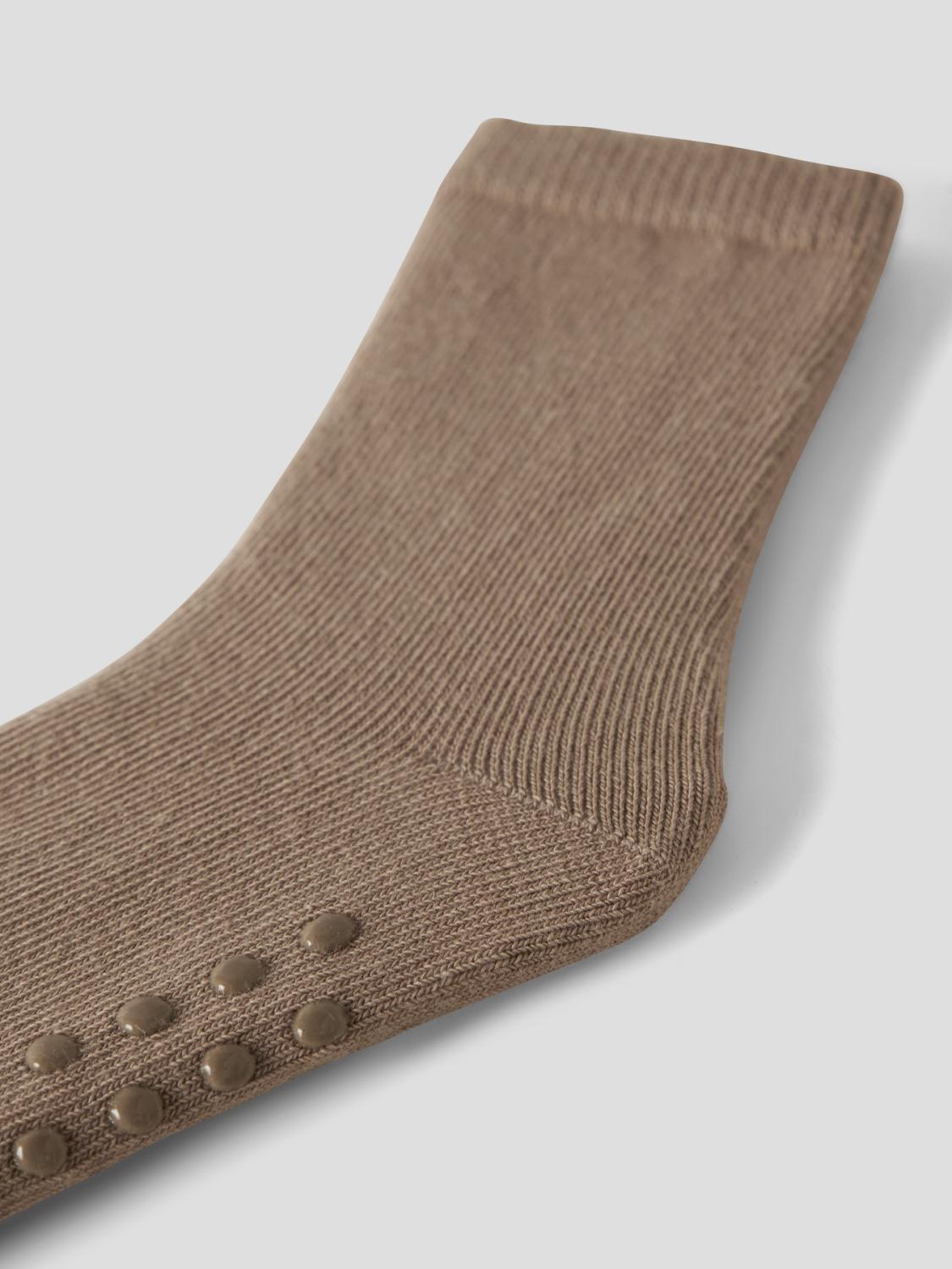 Förnya ditt barns basgarderob med mjuka strumpor med halkisar – perfekta för alla tillfällen, året runt. Ribbstickningen har ett vertikalt, randigt mönster med god elasticitet för en bekväm känsla och tidlös stil. Material: 78 % ekologisk bomull, 20 % polyamid, 2 % elastan