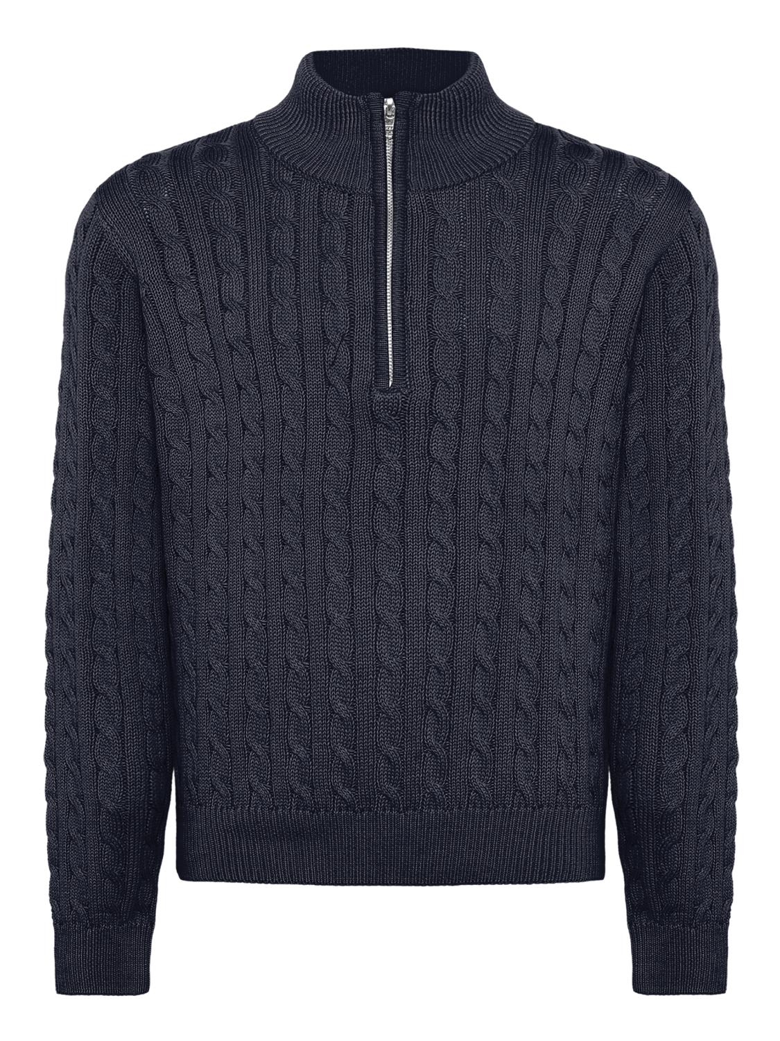 Terrasse Kabelstickad med halv dragkedja och ribbade kanter.
