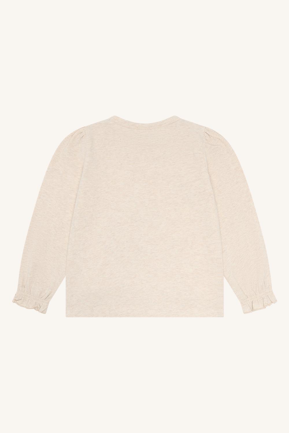 En mjuk långärmad t-shirt med ett sött broderat motiv, designad med mjukt rynkade ärmar och en bekväm rund halsringning. Det perfekta vardagsplagget med en charmig, nostalgisk känsla.